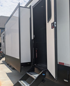 Bright, efficient, and designed with crew flow in mind—our 6-Station HMU / Wardrobe Trailer is a seamless work environment for hair, makeup, and wardrobe teams to keep your cast looking their best.